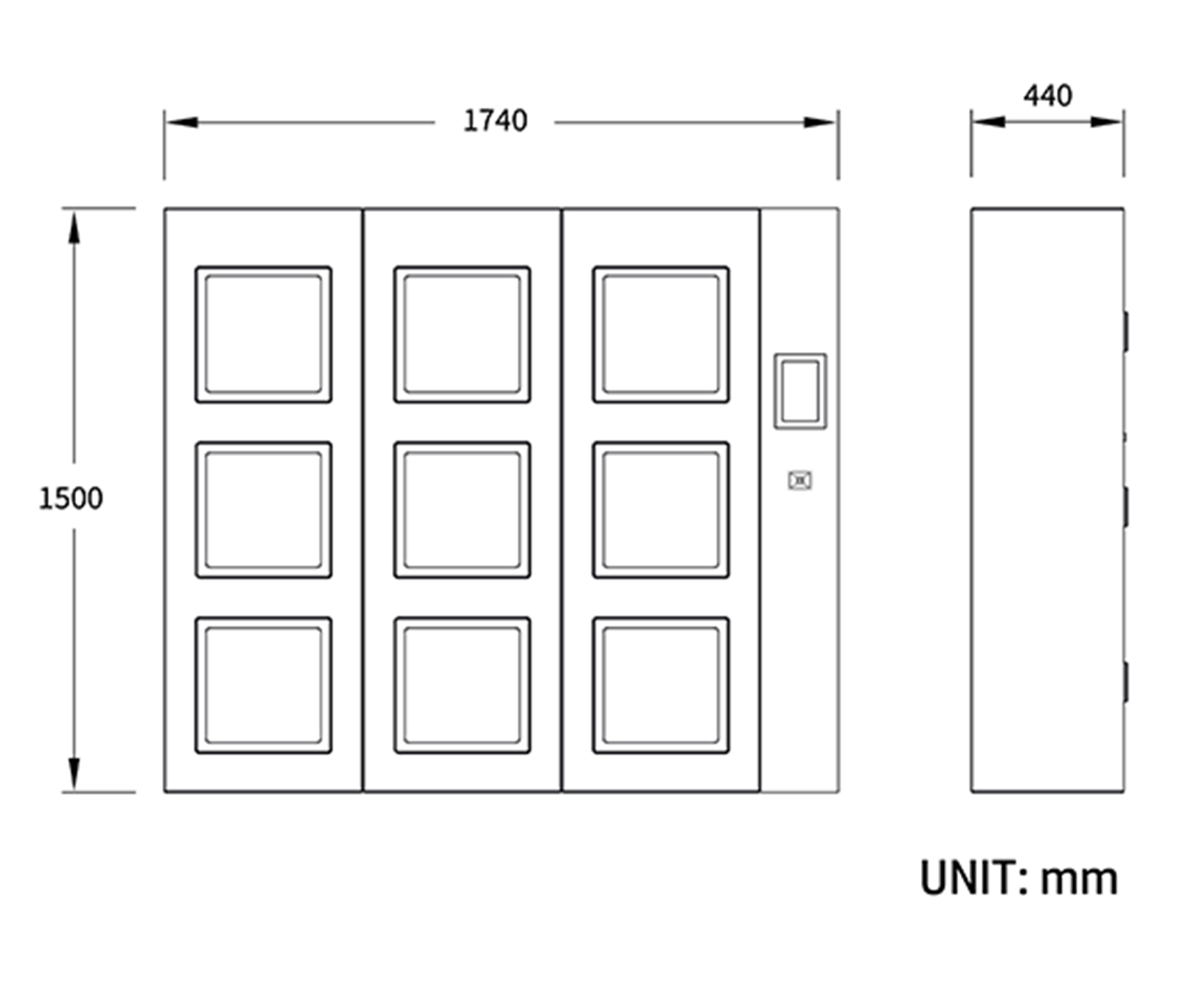 每柱外部尺寸H x W x D (mm) | 1500 x 510 x 440 |