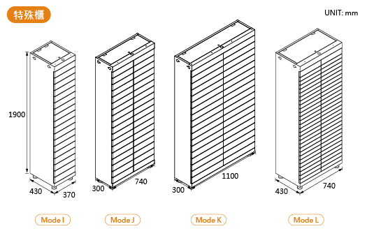 L 櫃 | 1900 x 740 x 430 | 28 | 56 |
